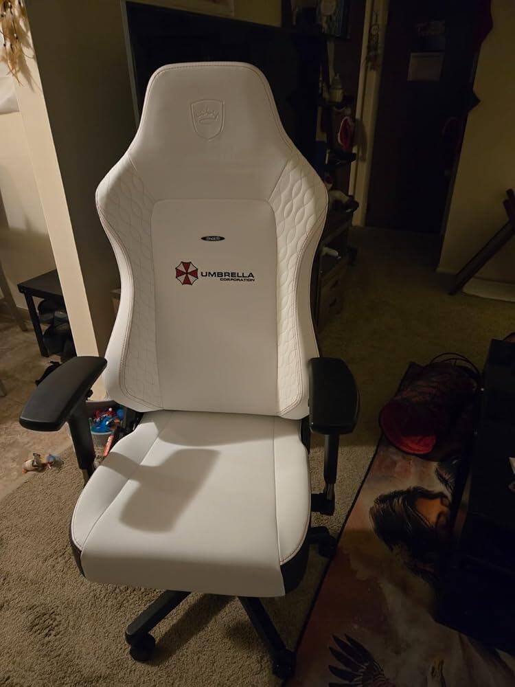 I got this chair for a chirstmas gift big resident evil fan that's why I got the chair but putting it together was a little tough one of the screws kept striping in the arm rest part but the other screw holding in place but when I turn the chair around in the coner it had a rip in it very disappointing with that for the money I payed for it but overall it's a nice chair